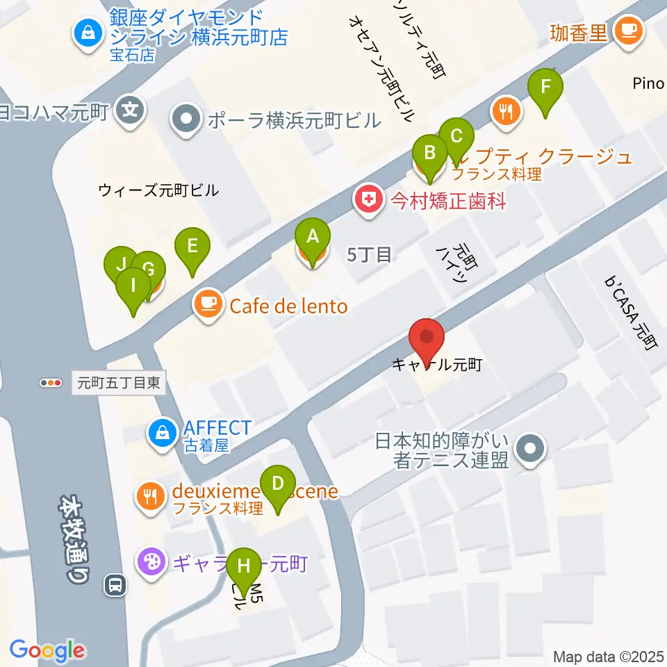 元町弦楽器 LA CANTINA周辺のファミレス・ファーストフード一覧地図