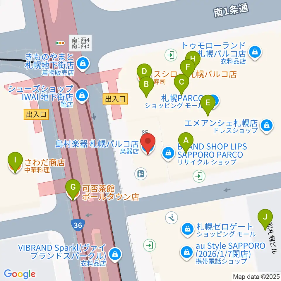 島村楽器 札幌パルコ店 周辺のファミレス・ファーストフード一覧地図