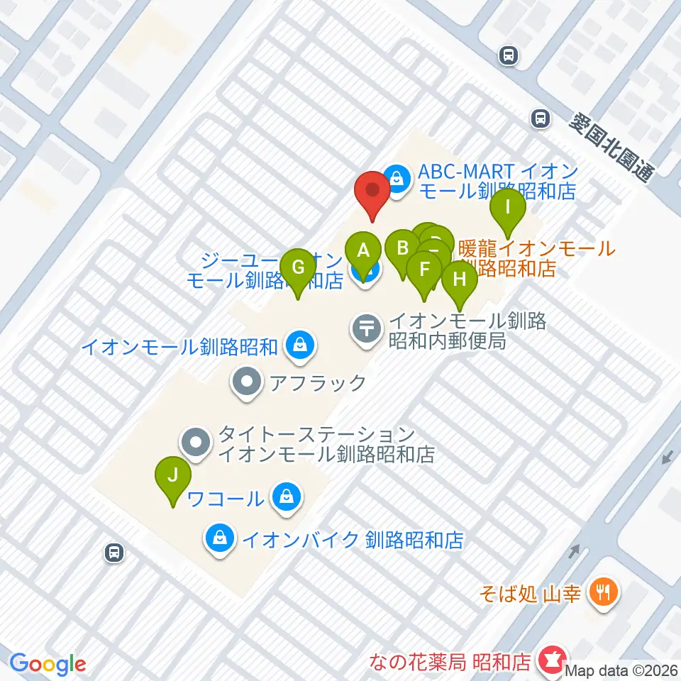 島村楽器 イオンモール釧路昭和店周辺のファミレス・ファーストフード一覧地図