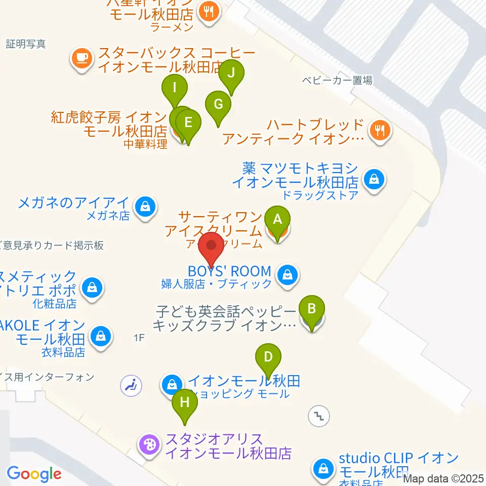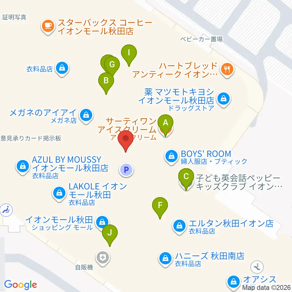 島村楽器 イオンモール秋田店周辺のファミレス・ファーストフード一覧地図