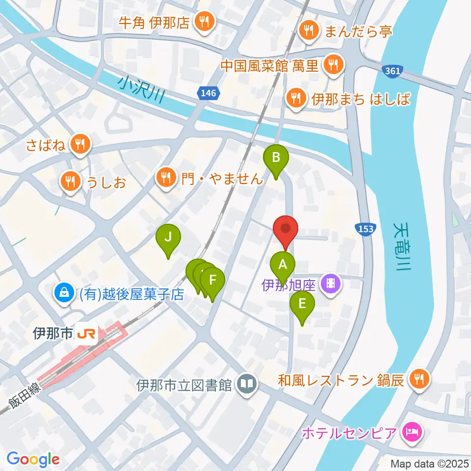 伊那楽器レンタルスタジオ周辺のファミレス・ファーストフード一覧地図