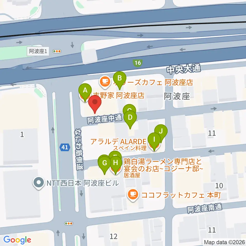 阿波座BIG JACK周辺のファミレス・ファーストフード一覧地図