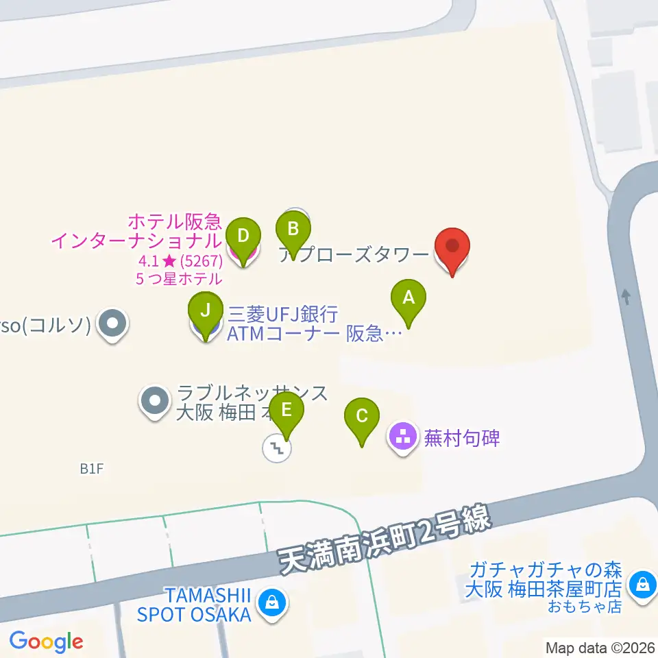 梅田芸術劇場周辺のファミレス・ファーストフード一覧地図