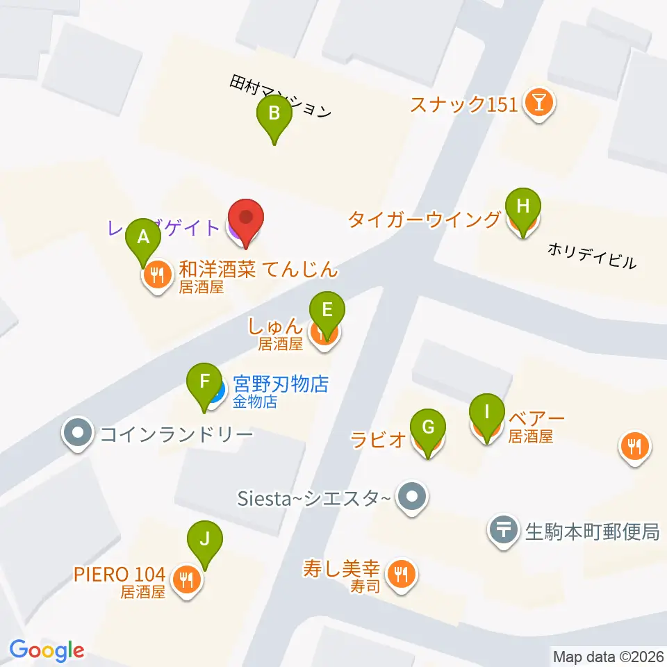 生駒RHEBGATE周辺のファミレス・ファーストフード一覧地図