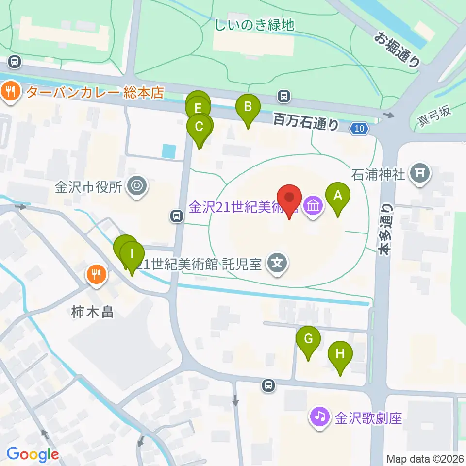 金沢21世紀美術館周辺のファミレス・ファーストフード一覧地図