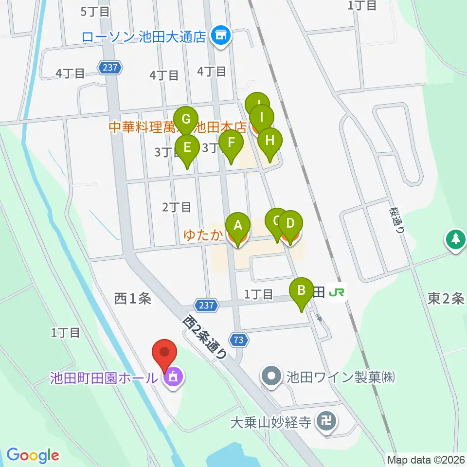 池田町田園ホール周辺のファミレス・ファーストフード一覧地図