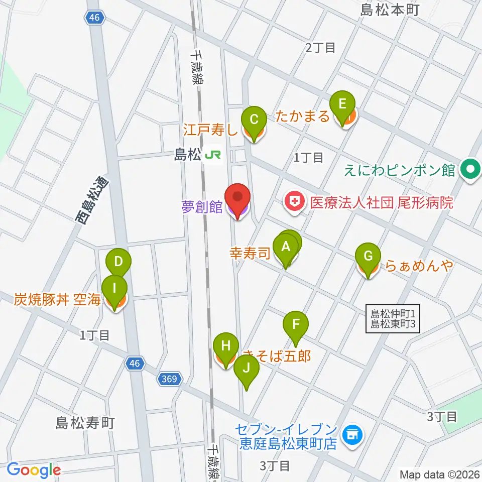 夢創館周辺のファミレス・ファーストフード一覧地図