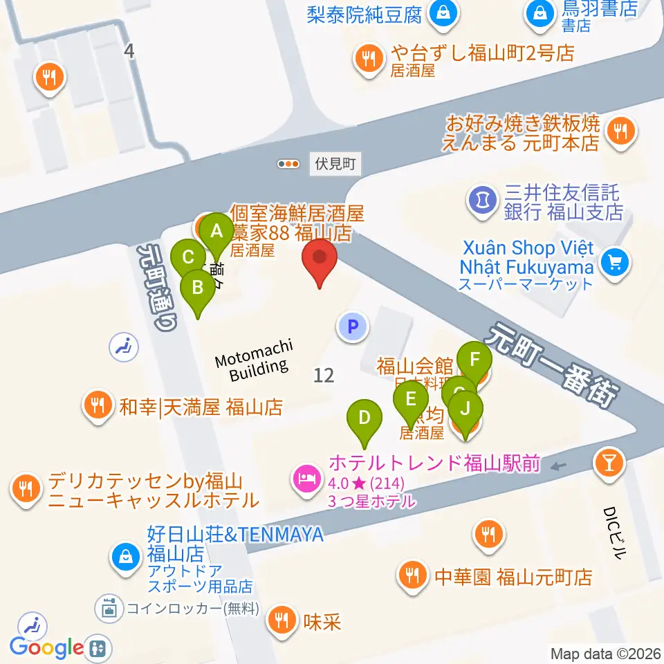 カワイ福山ショップ周辺のファミレス・ファーストフード一覧地図