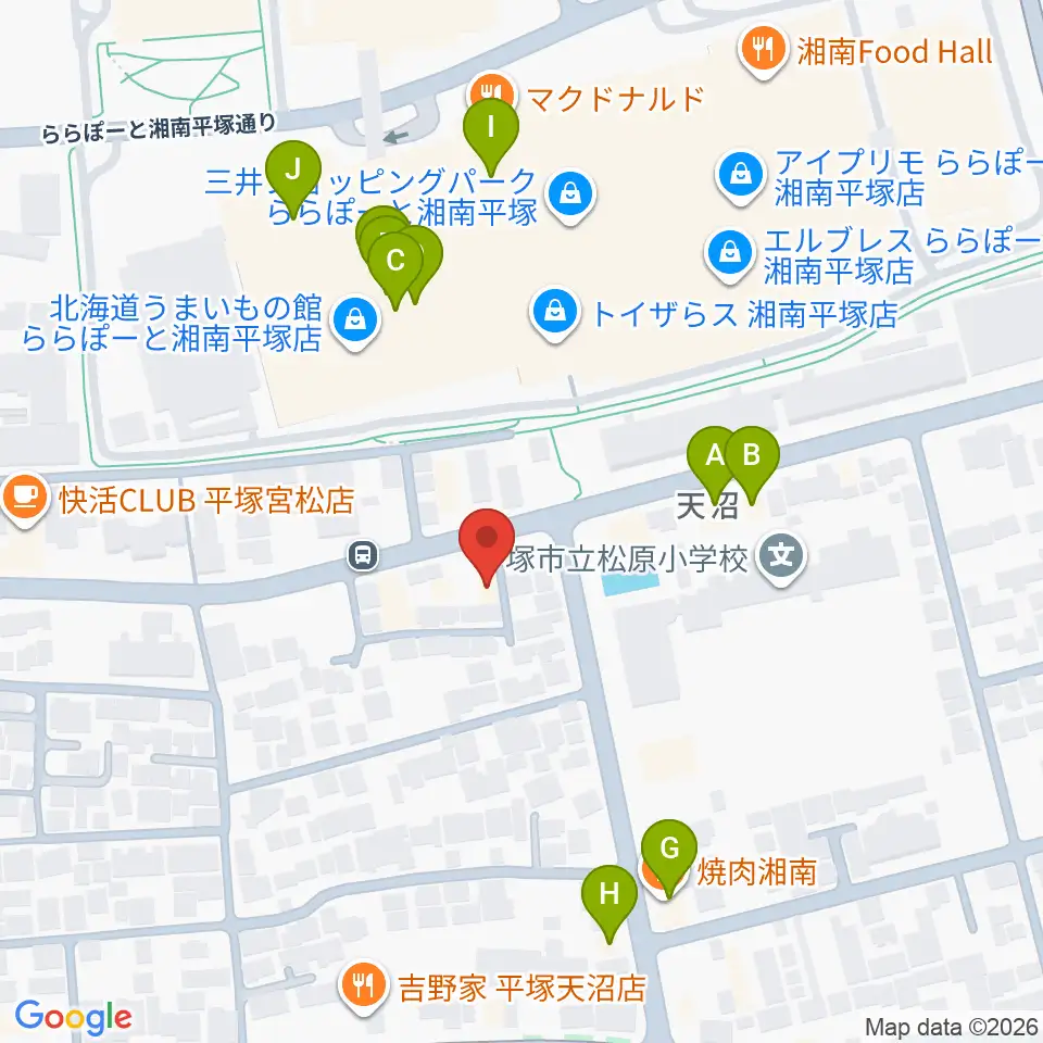 ヨネザワ楽器周辺のファミレス・ファーストフード一覧地図