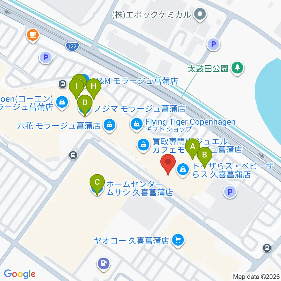 島村楽器 モラージュ菖蒲店周辺のファミレス・ファーストフード一覧地図