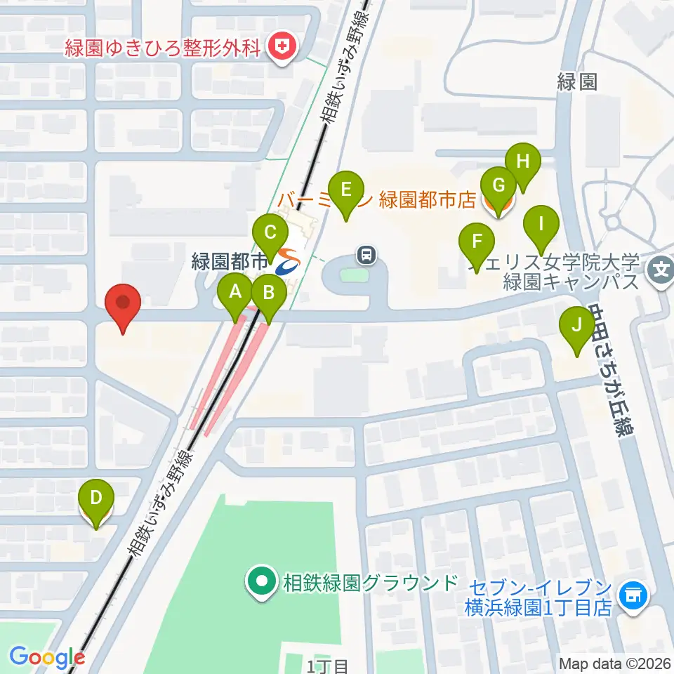 緑園都市センター ヤマハミュージック周辺のファミレス・ファーストフード一覧地図