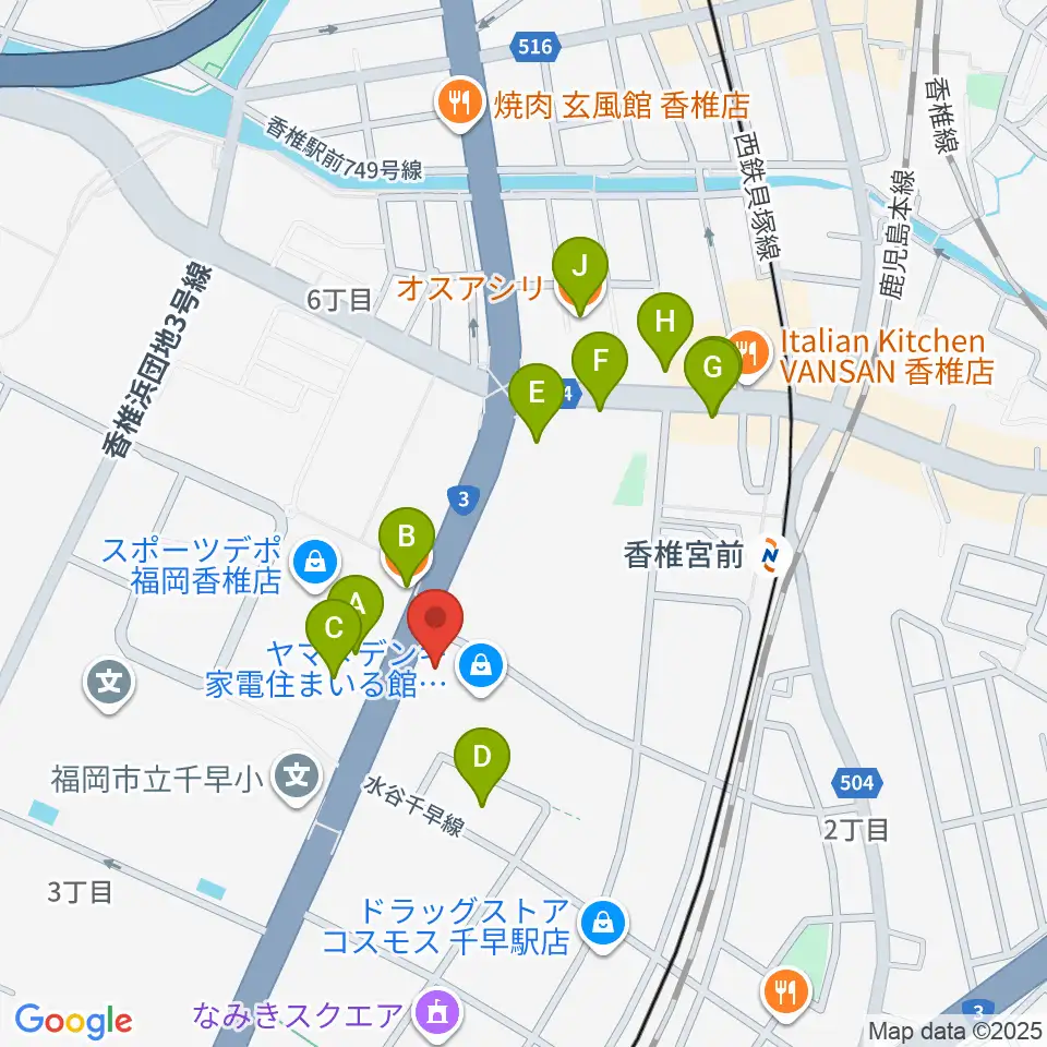 ミュージックメイト福岡周辺のファミレス・ファーストフード一覧地図