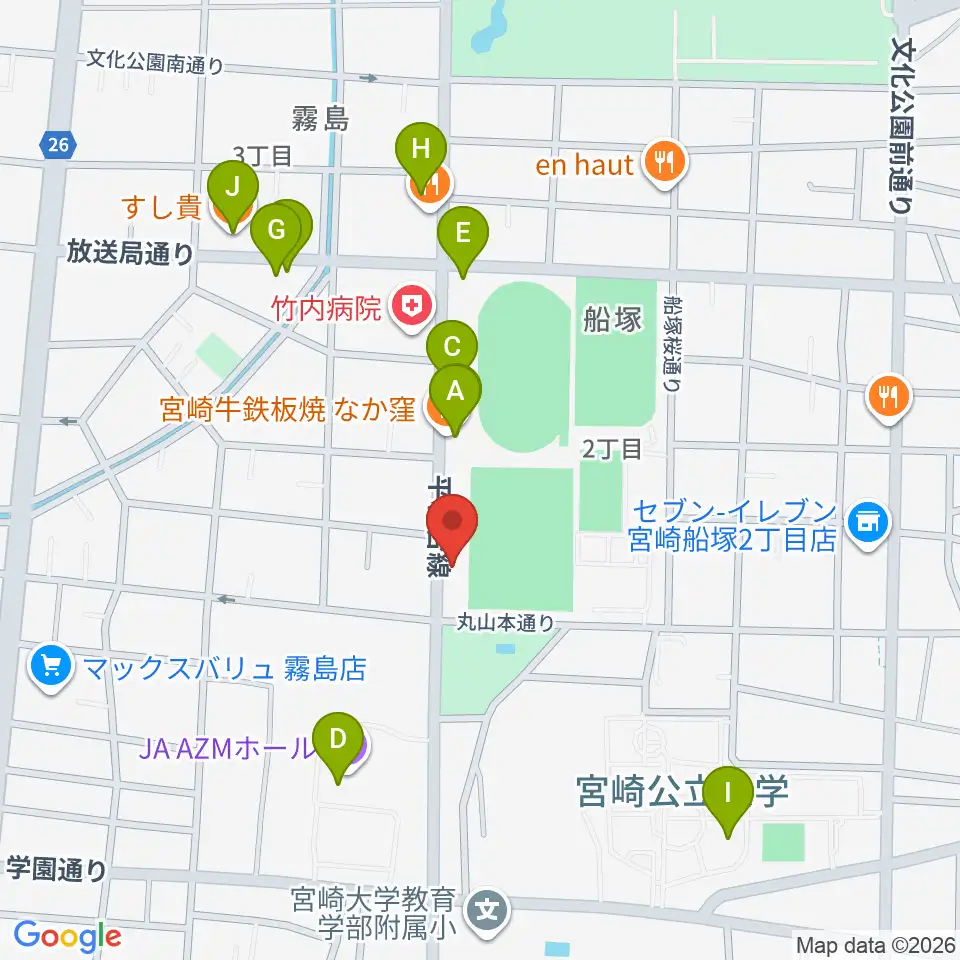 宮崎ピアノ技術センター周辺のファミレス・ファーストフード一覧地図