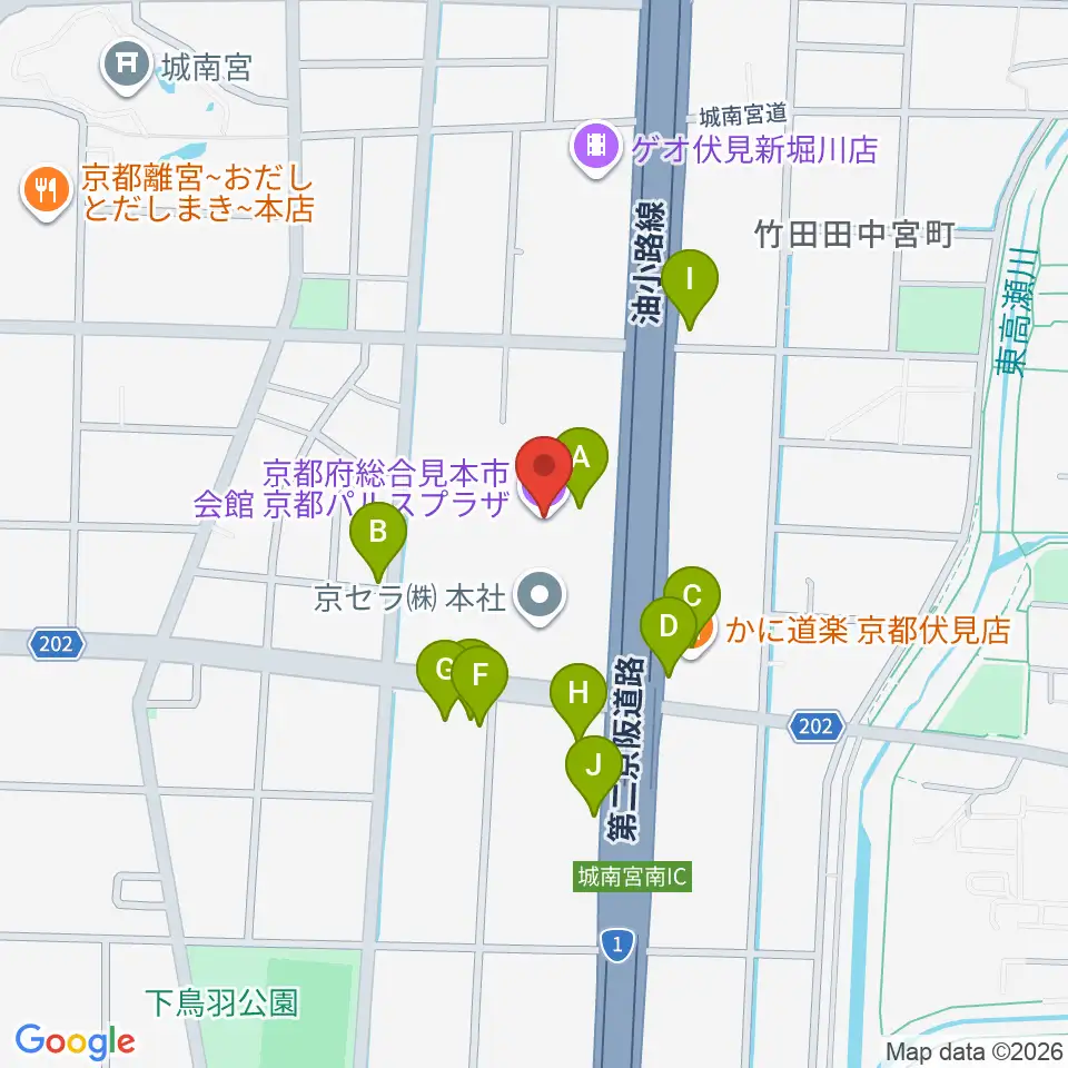 京都パルスプラザ周辺のファミレス・ファーストフード一覧地図