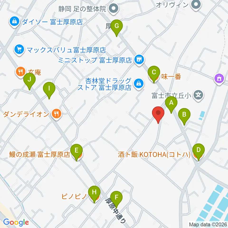 ハウスゾンネンシャイン音楽堂周辺のファミレス・ファーストフード一覧地図