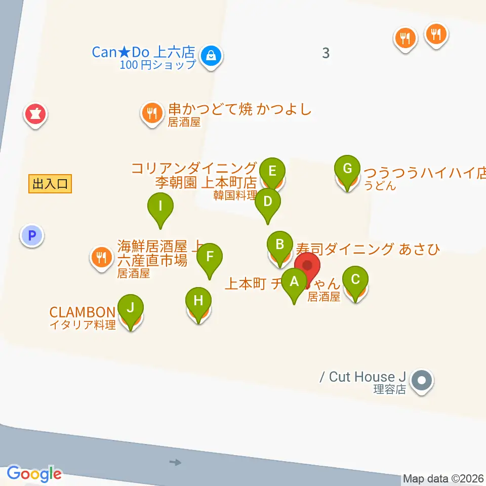 凛ミュージック 上本町ハイハイタウン教室周辺のファミレス・ファーストフード一覧地図