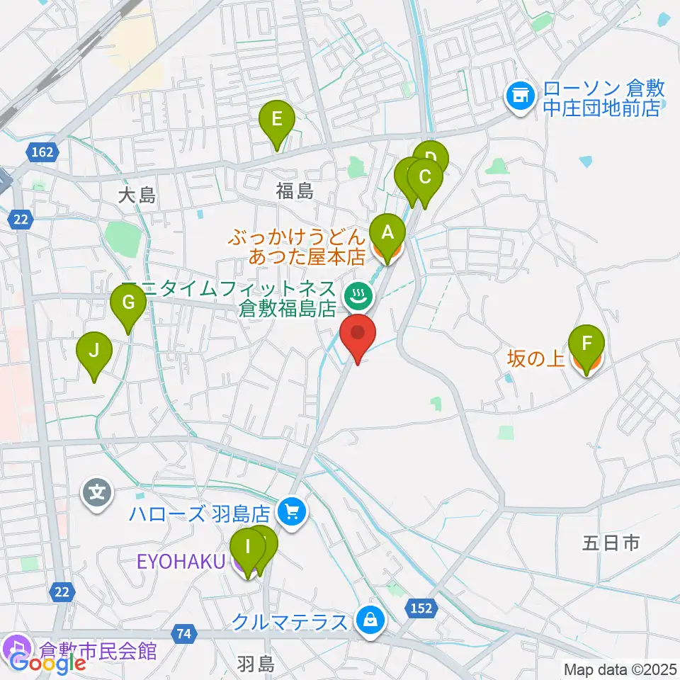 ユニスタイル倉敷 ヤマハミュージック周辺のファミレス・ファーストフード一覧地図