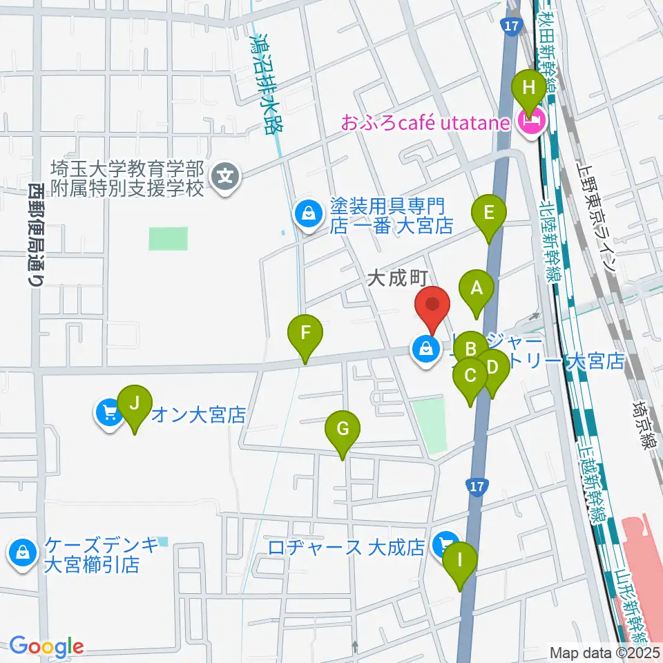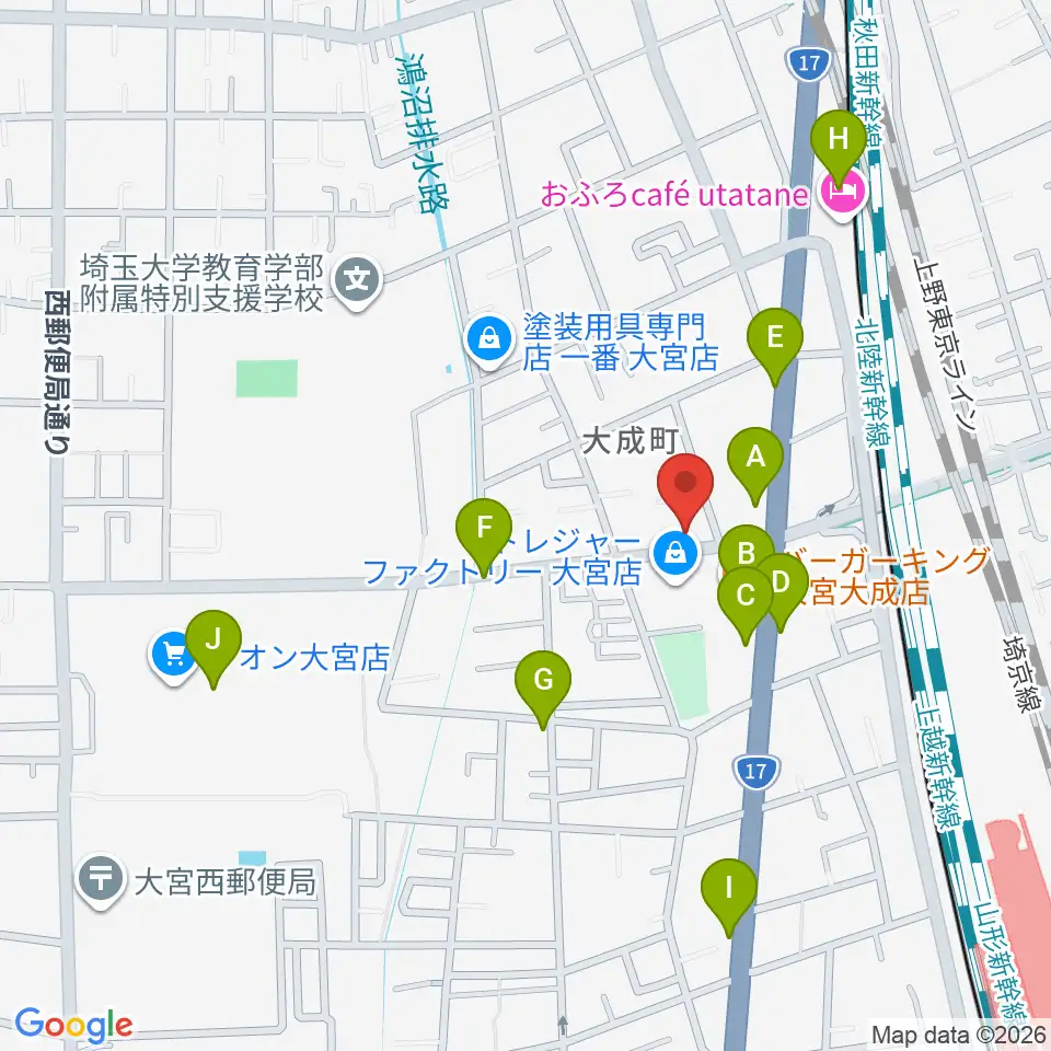 ユニオン楽器ピアノパワーセンターさいたま店周辺のファミレス・ファーストフード一覧地図