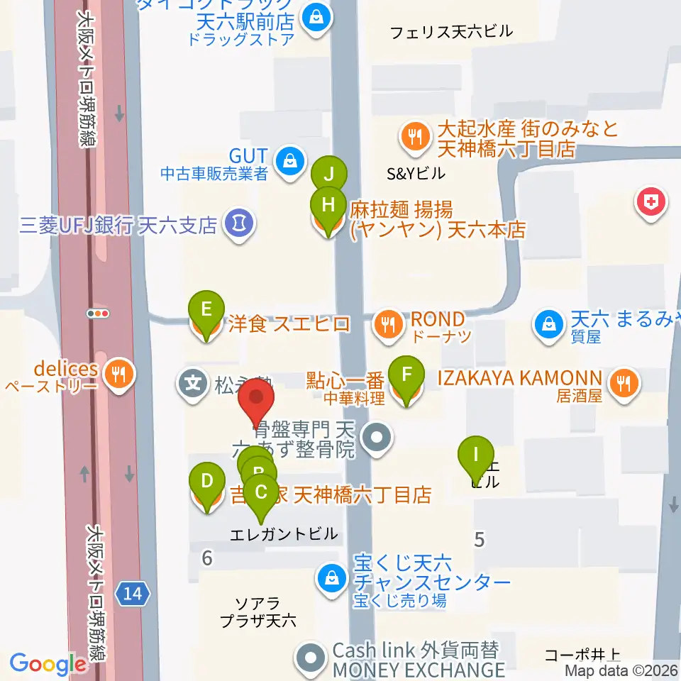 フィス音楽教室周辺のファミレス・ファーストフード一覧地図