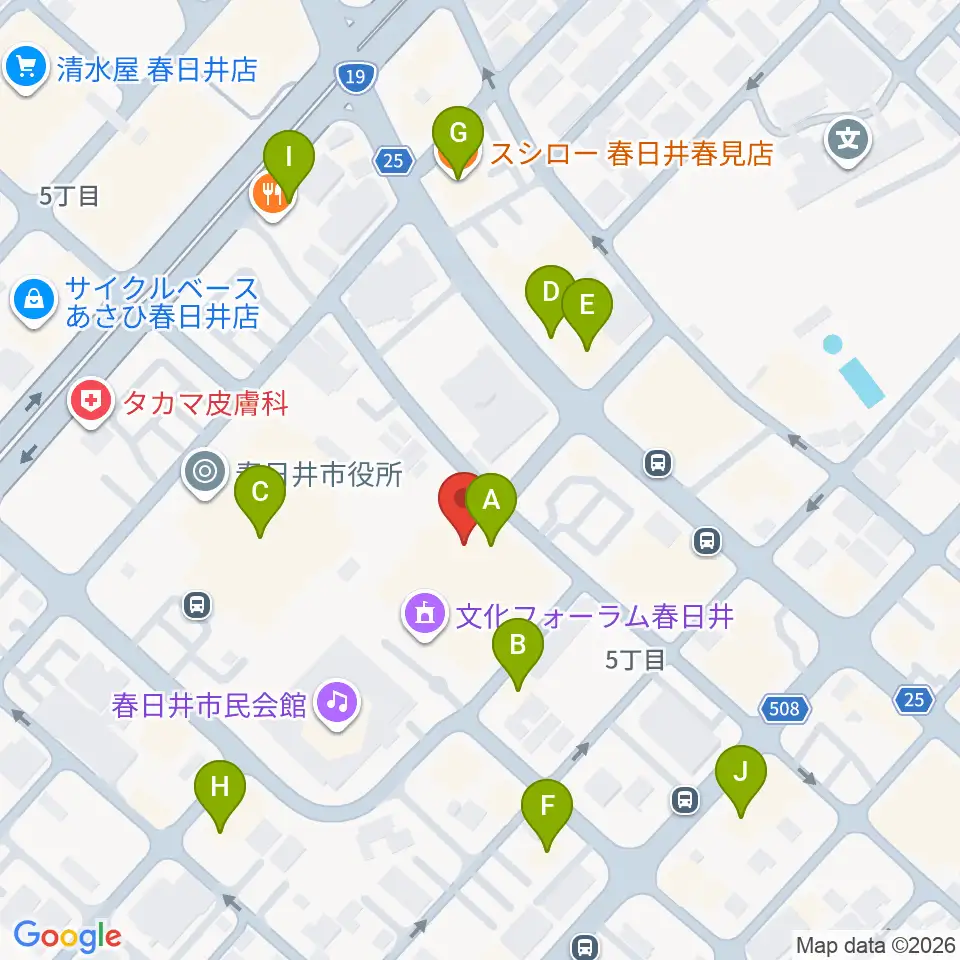 文化フォーラム春日井周辺のファミレス・ファーストフード一覧地図