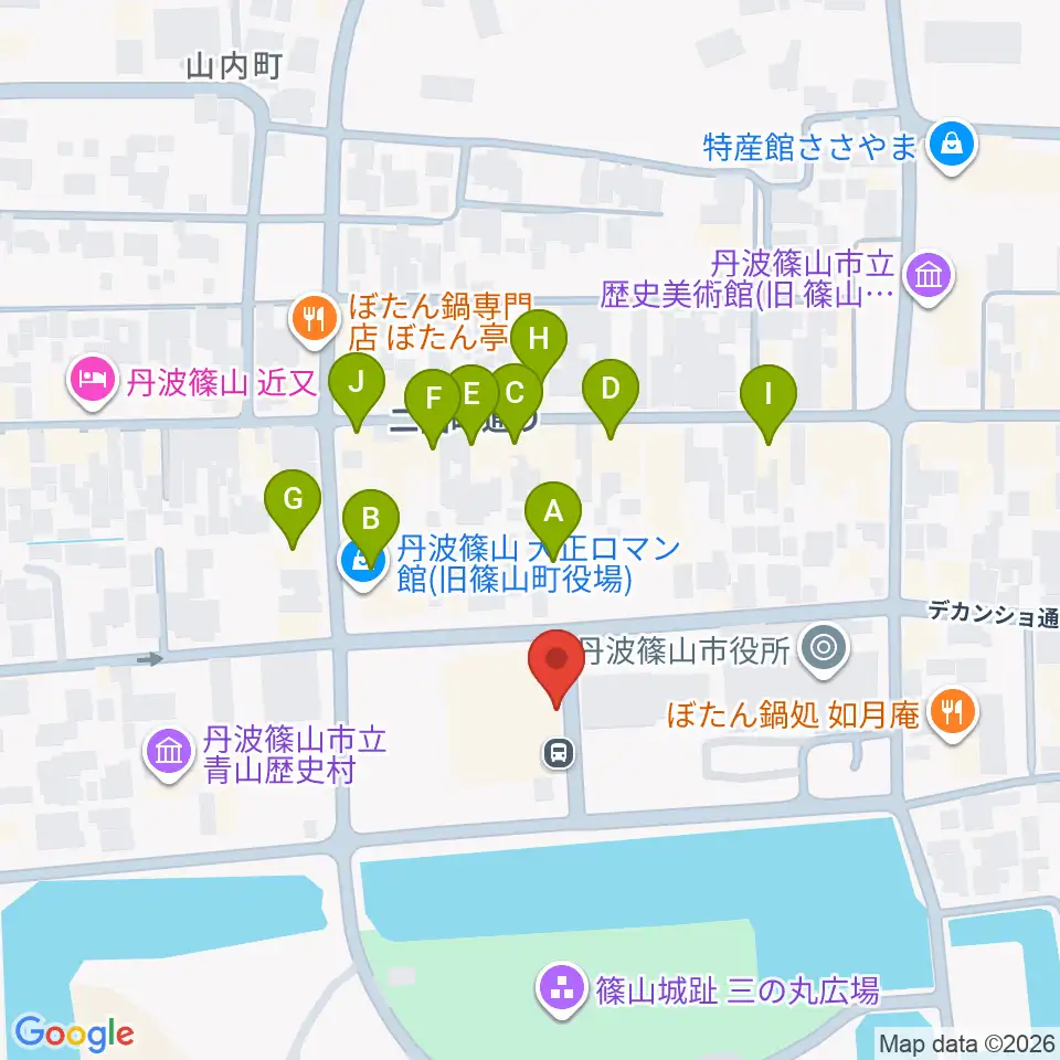 丹波篠山市立田園交響ホール周辺のファミレス・ファーストフード一覧地図