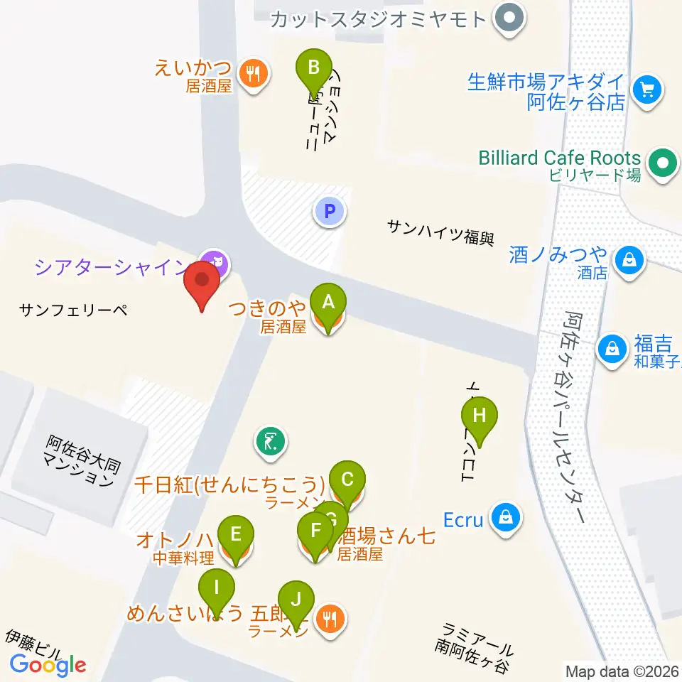 阿佐ヶ谷シアターシャイン周辺のファミレス・ファーストフード一覧地図