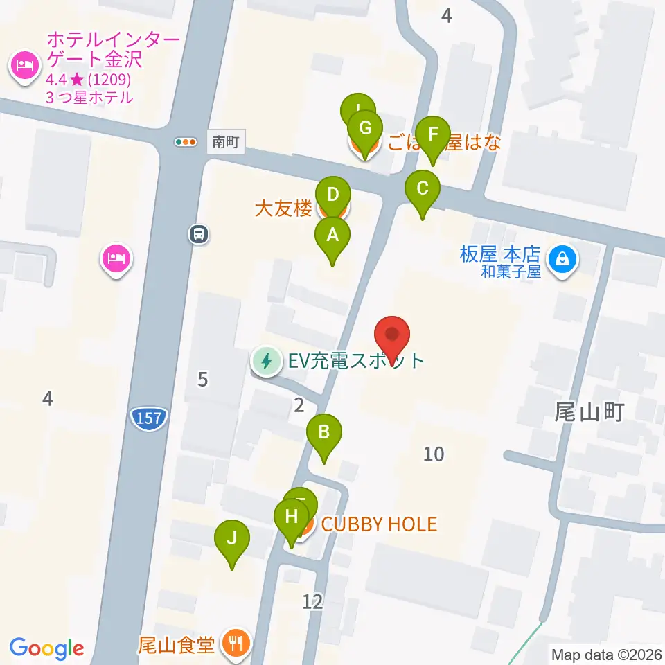石川県文教会館周辺のファミレス・ファーストフード一覧地図