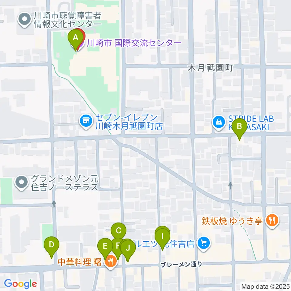 川崎市国際交流センター周辺のファミレス・ファーストフード一覧地図