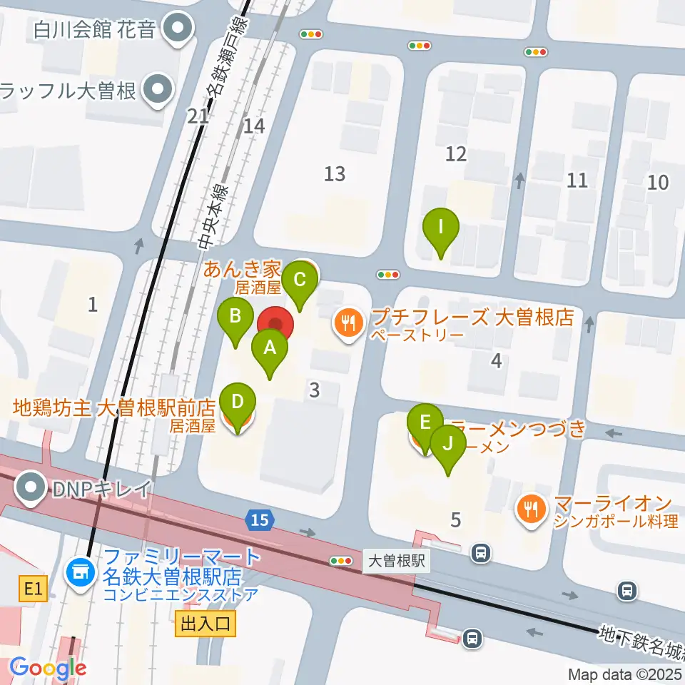 名古屋 新堀ギター音楽院 大曽根教室周辺のファミレス・ファーストフード一覧地図