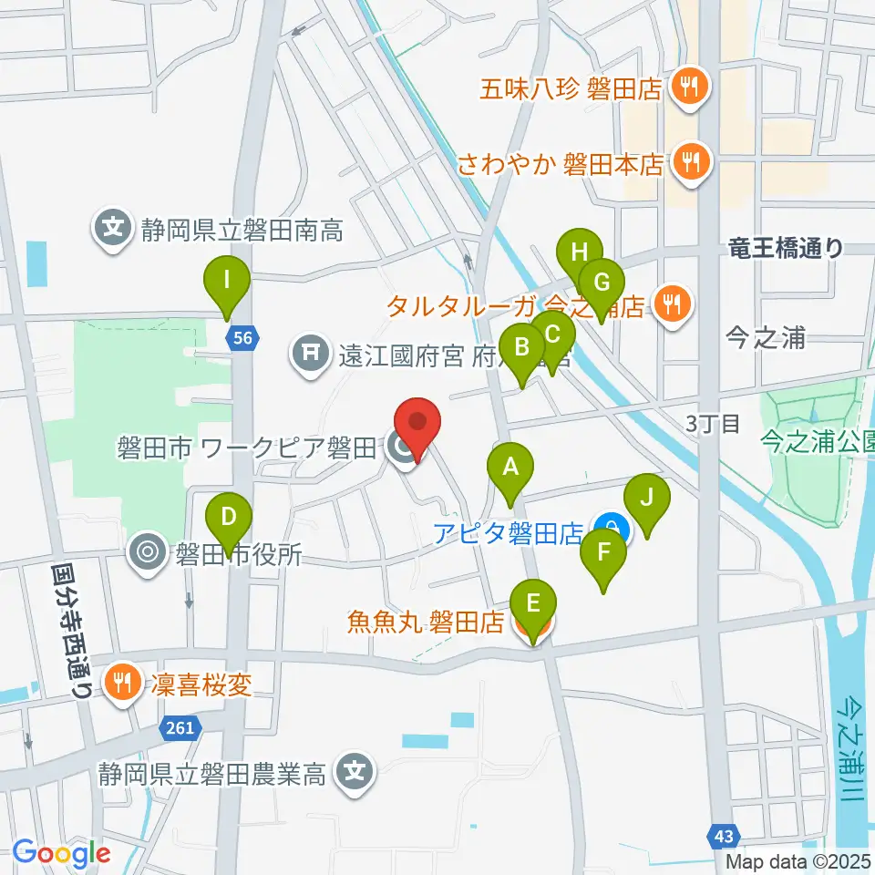 ワークピア磐田周辺のファミレス・ファーストフード一覧地図