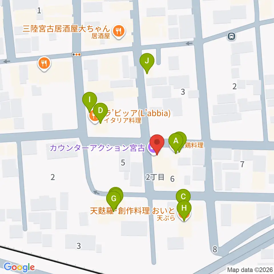 クラブカウンターアクション宮古周辺のファミレス・ファーストフード一覧地図