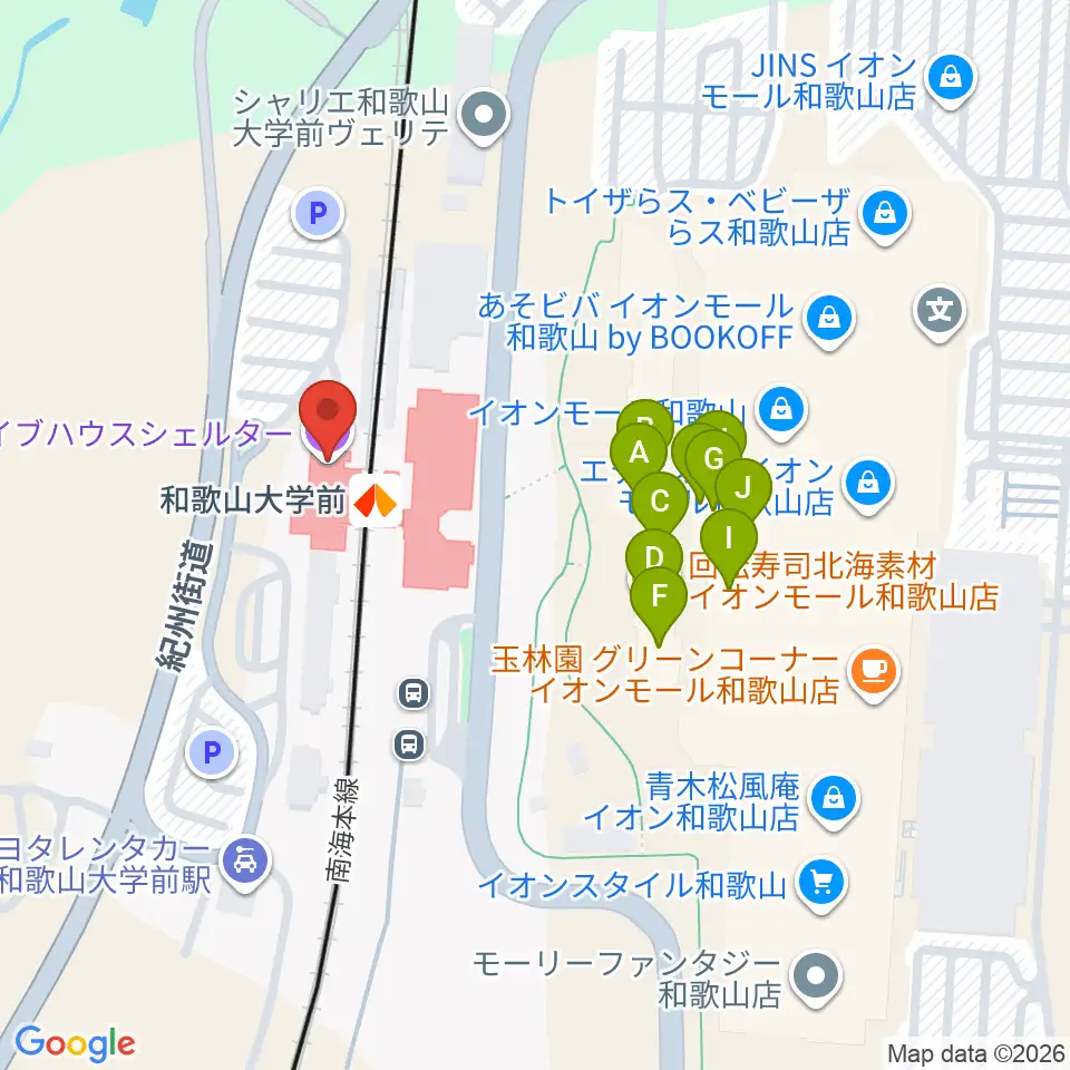 和歌山シェルター周辺のファミレス・ファーストフード一覧地図
