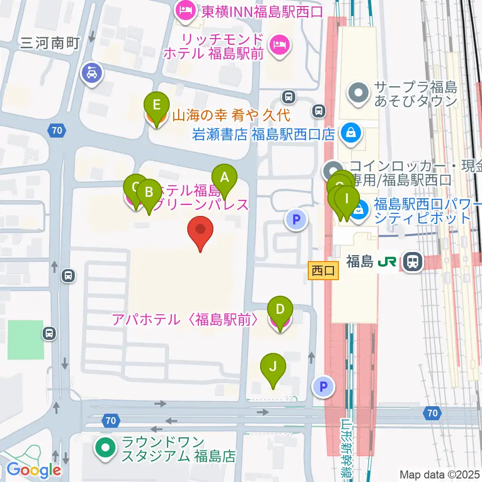 ヨークカルチャーセンター福島周辺のファミレス・ファーストフード一覧地図