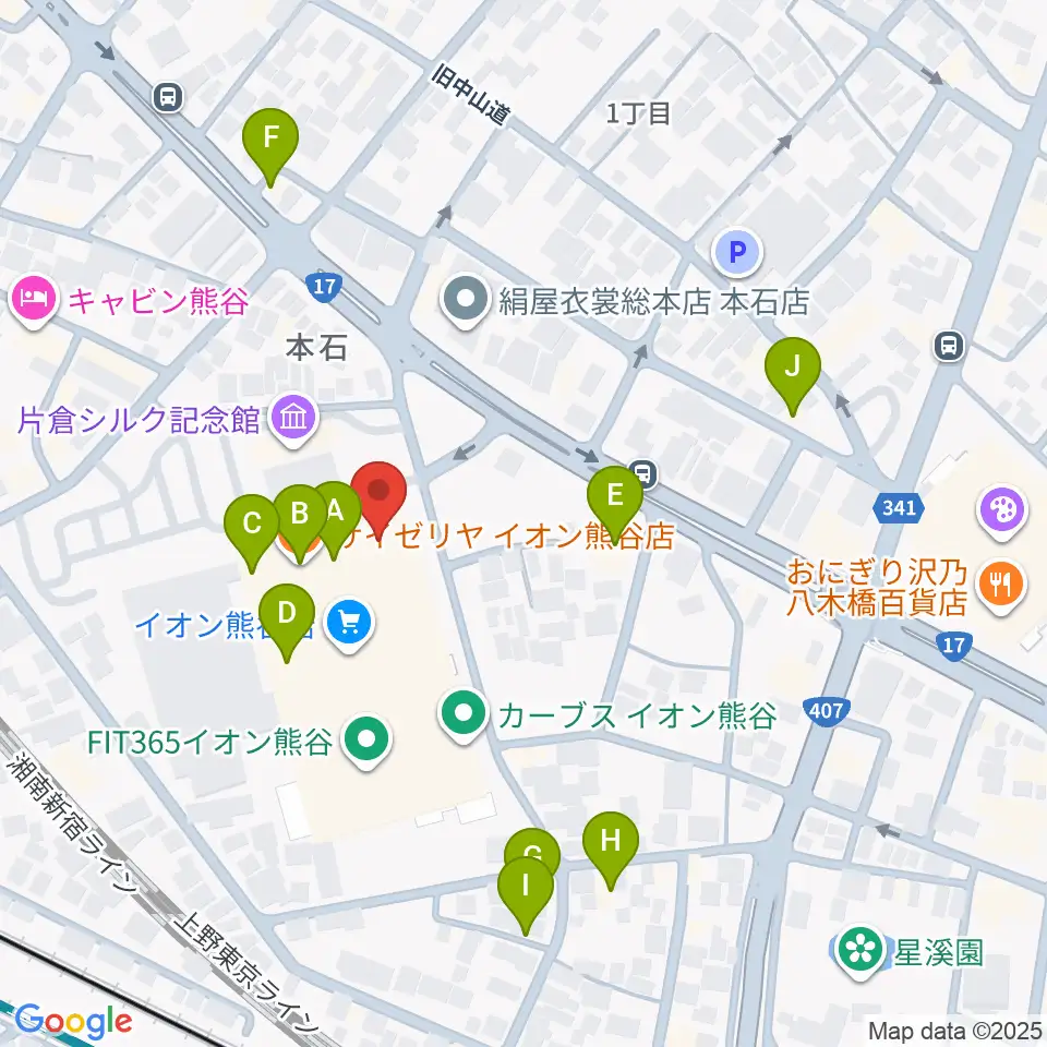 熊谷カルチャーセンター周辺のファミレス・ファーストフード一覧地図