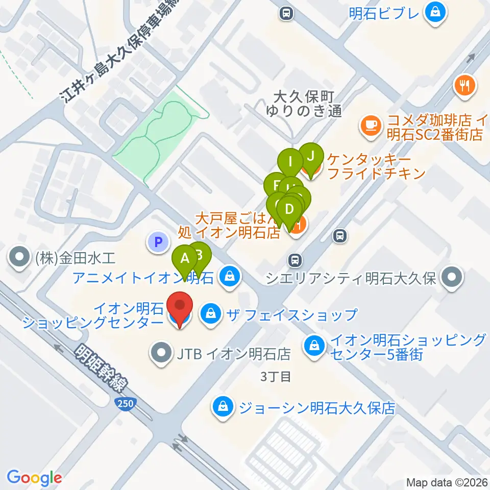 明石カルチャーセンター周辺のファミレス・ファーストフード一覧地図