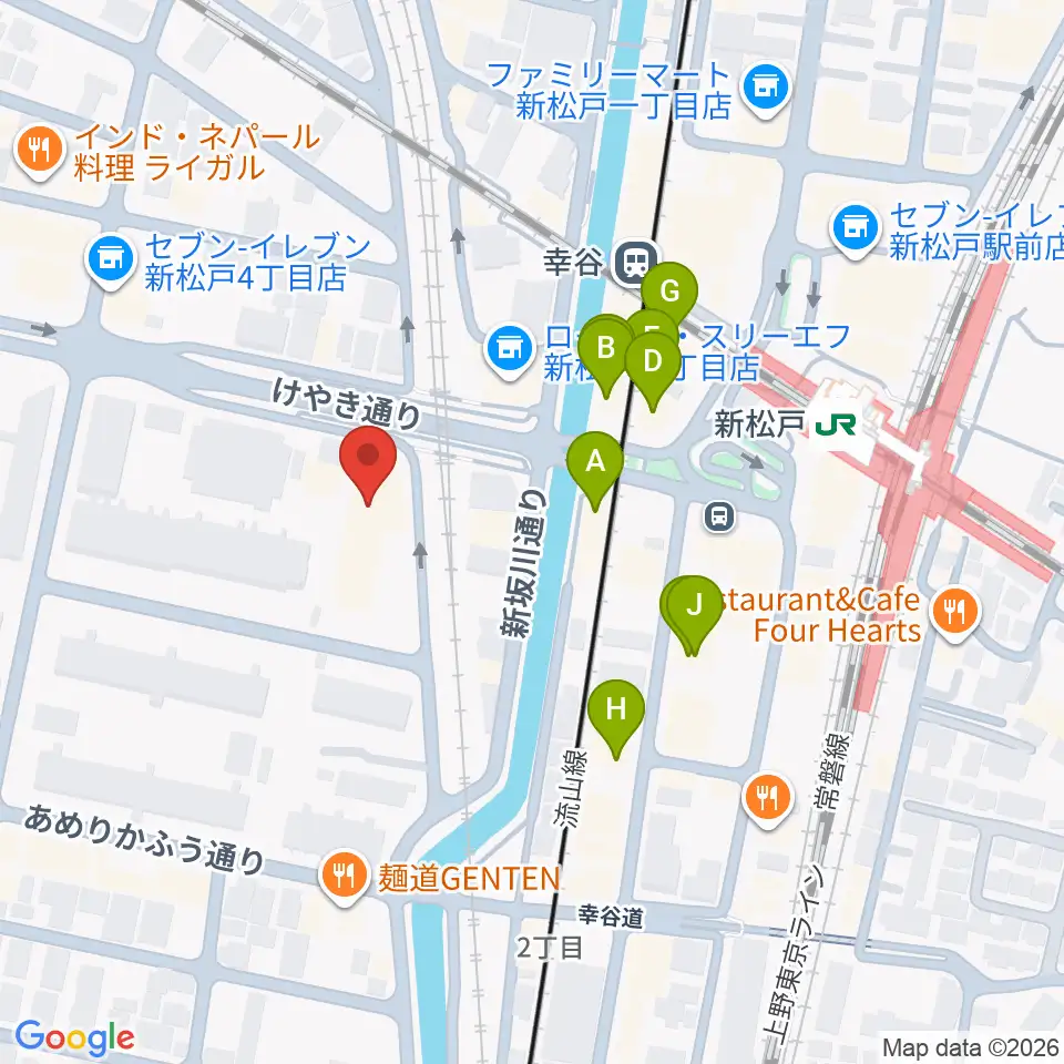 伊藤楽器 新松戸センター周辺のファミレス・ファーストフード一覧地図