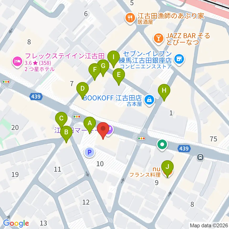 江古田マーキー周辺のファミレス・ファーストフード一覧地図