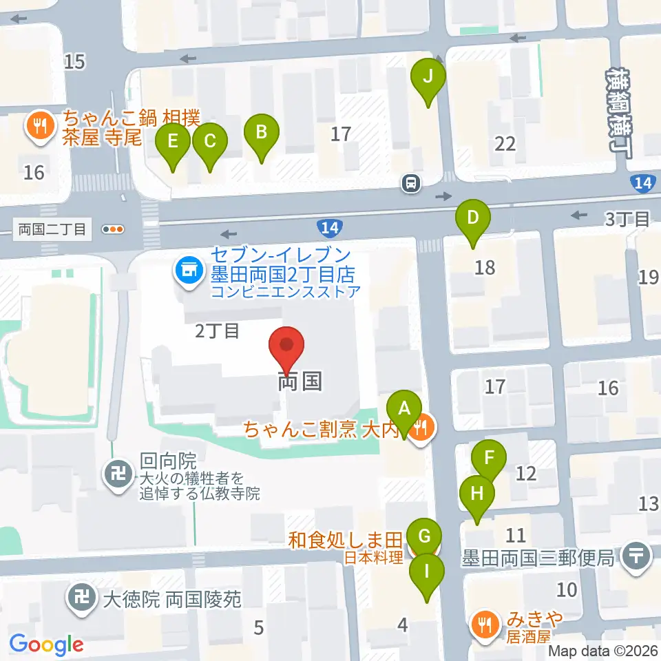 両国シアタ-カイ周辺のファミレス・ファーストフード一覧地図