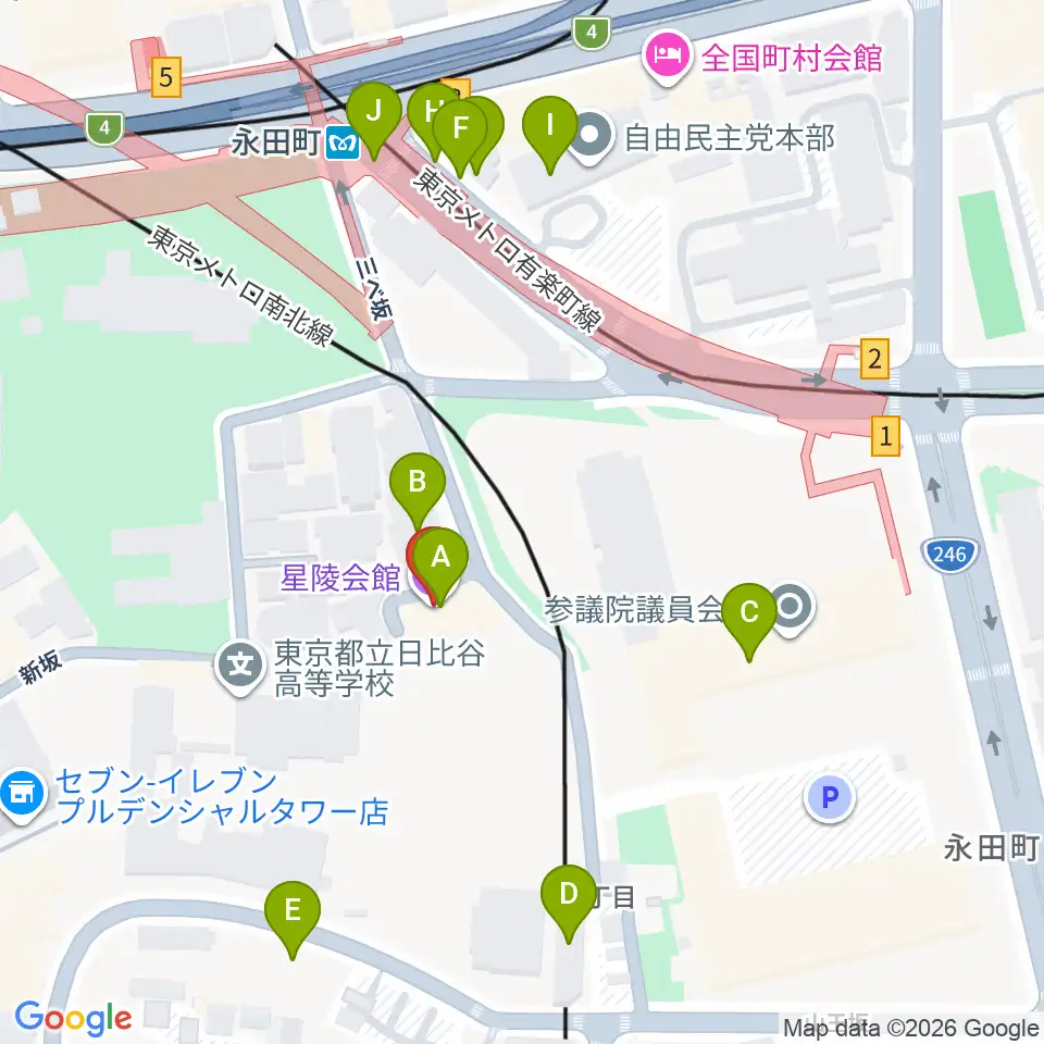 星陵会館周辺のファミレス・ファーストフード一覧地図