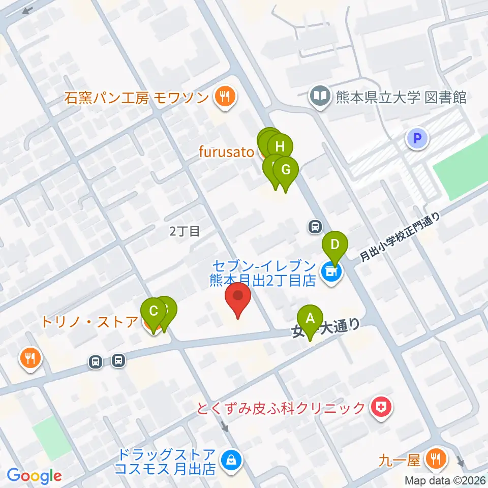 大谷楽器 月出教室周辺のファミレス・ファーストフード一覧地図