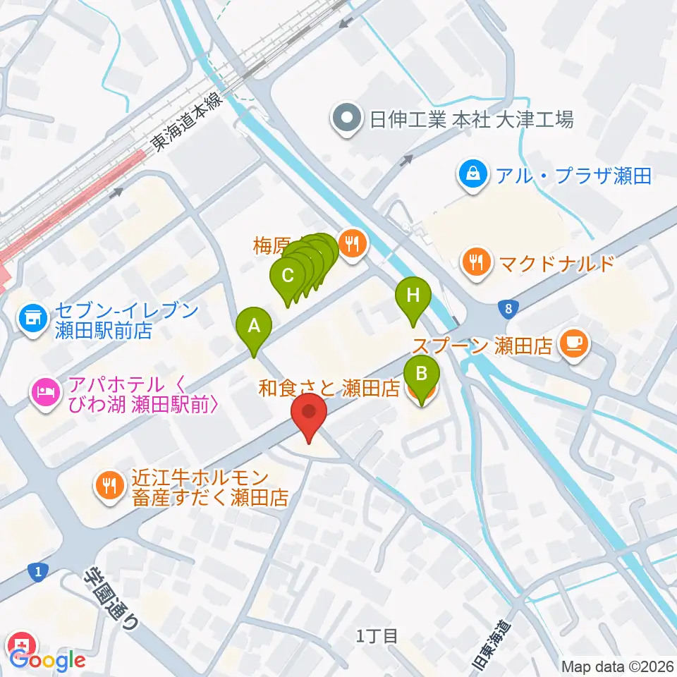ロマン楽器 瀬田ショップ周辺のファミレス・ファーストフード一覧地図