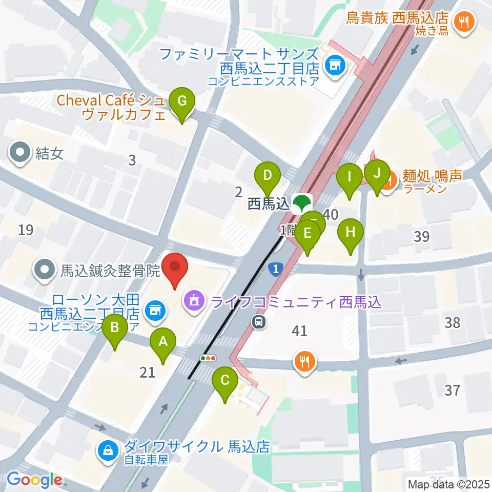 ライフコミュニティ西馬込 音楽スタジオ周辺のファミレス・ファーストフード一覧地図