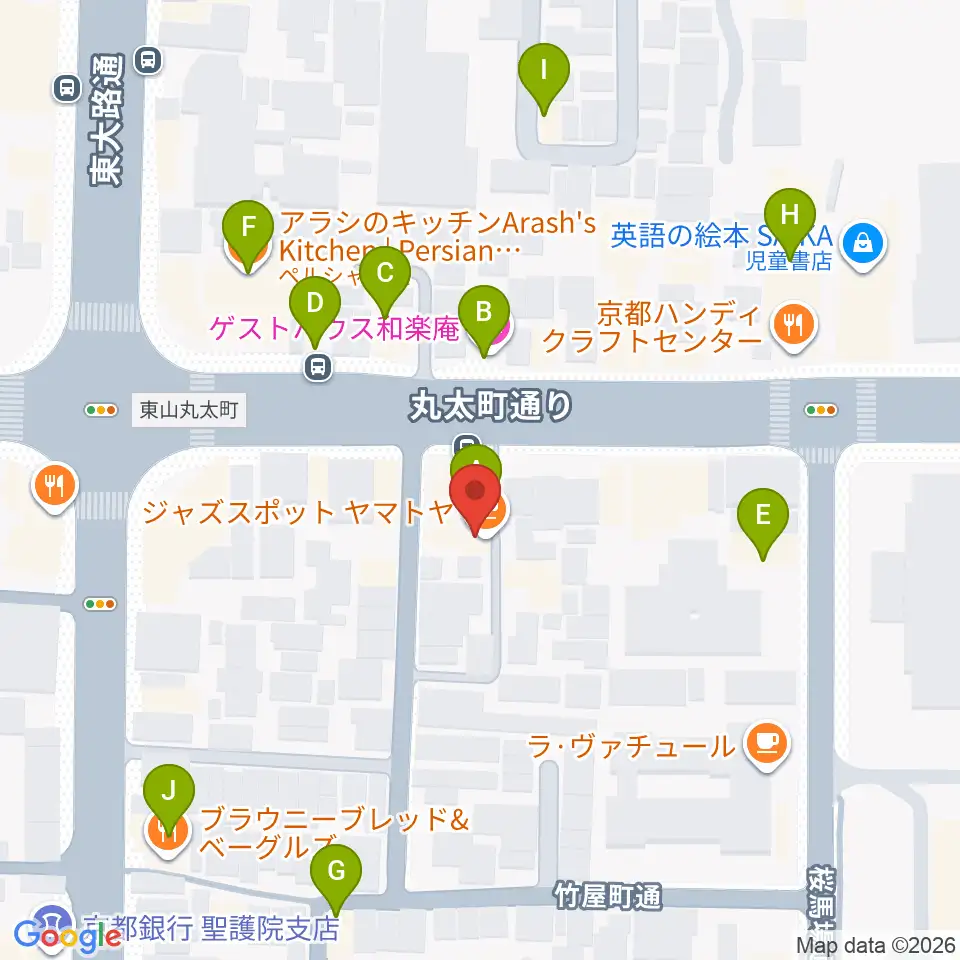 ジャズスポットヤマトヤ周辺のファミレス・ファーストフード一覧地図