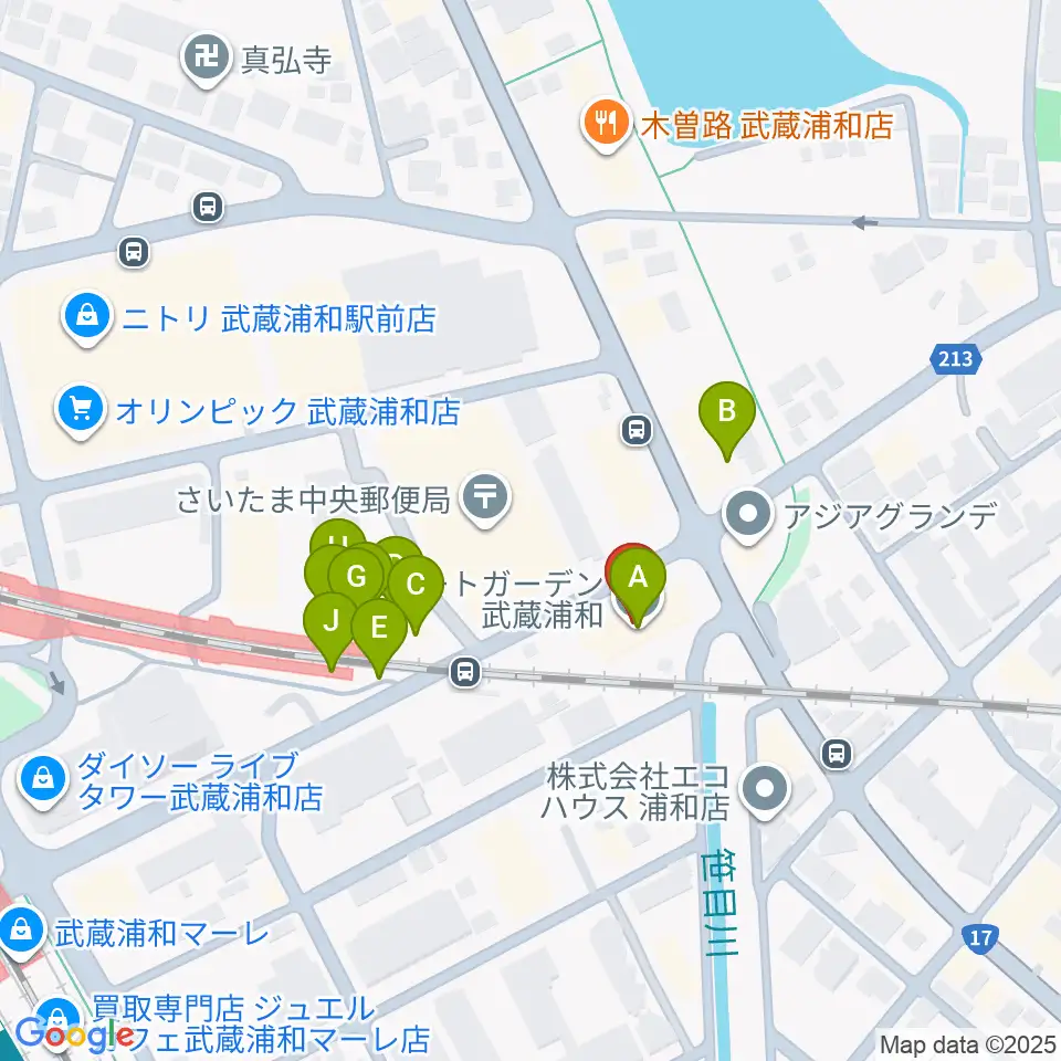 柏屋楽器 武蔵浦和ミュージックセンター周辺のファミレス・ファーストフード一覧地図