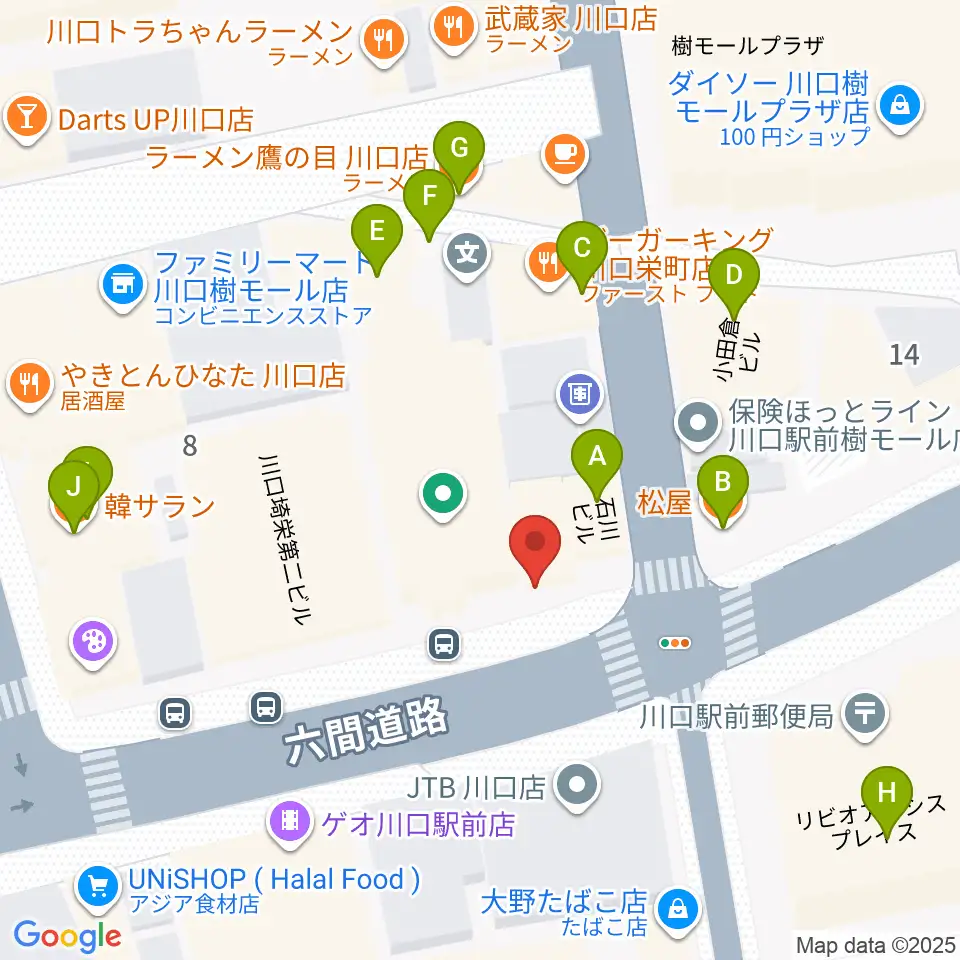 柏屋楽器 柏屋ミュージックサロン周辺のファミレス・ファーストフード一覧地図