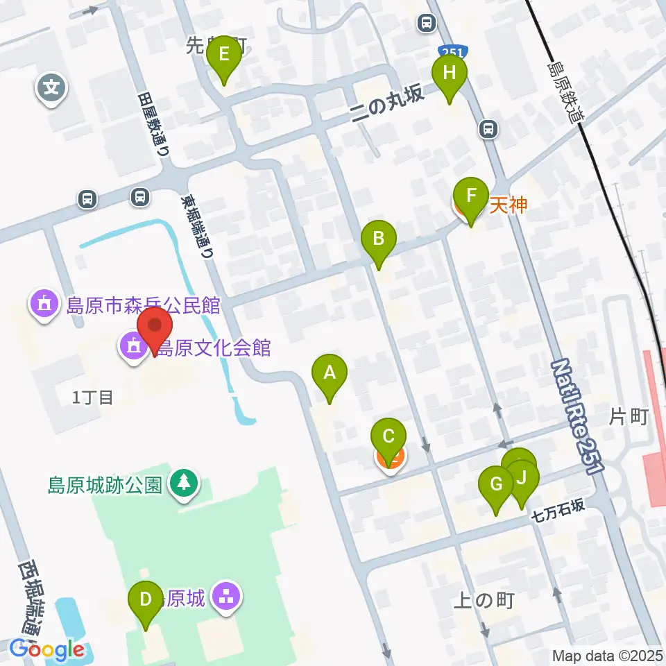 島原文化会館周辺のファミレス・ファーストフード一覧地図