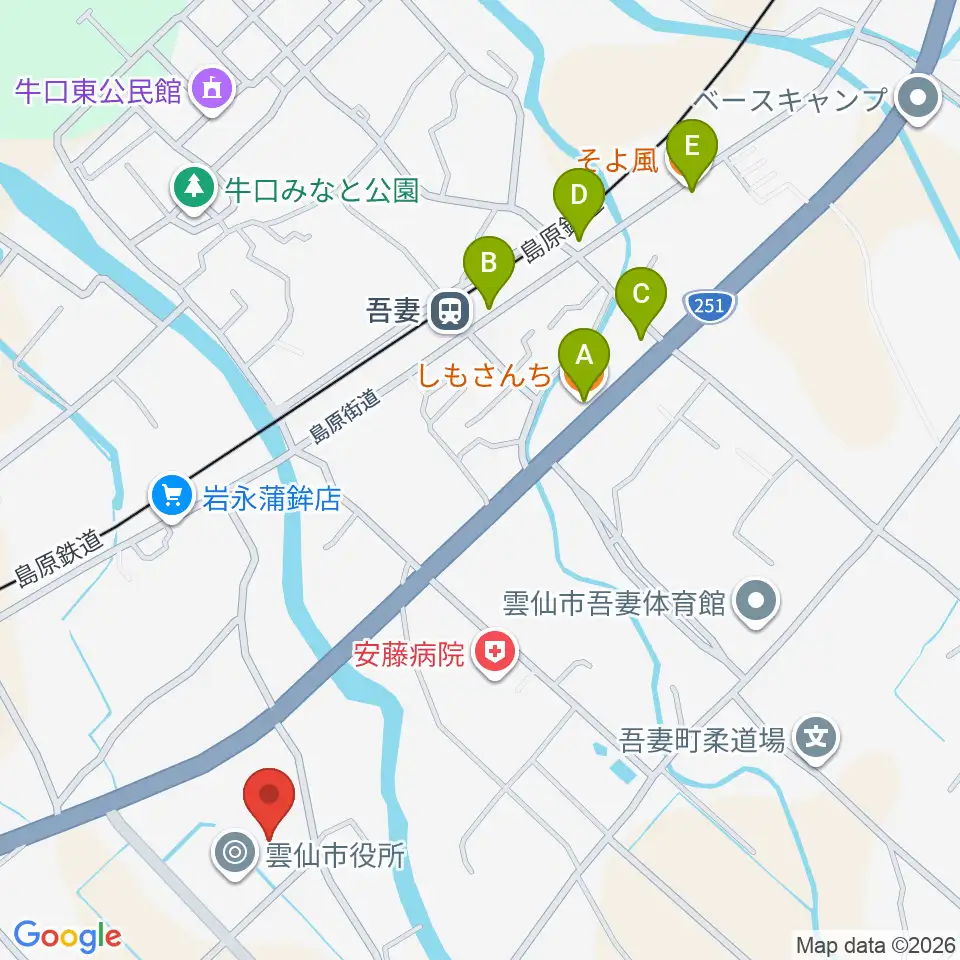 雲仙市吾妻町ふるさと会館周辺のファミレス・ファーストフード一覧地図