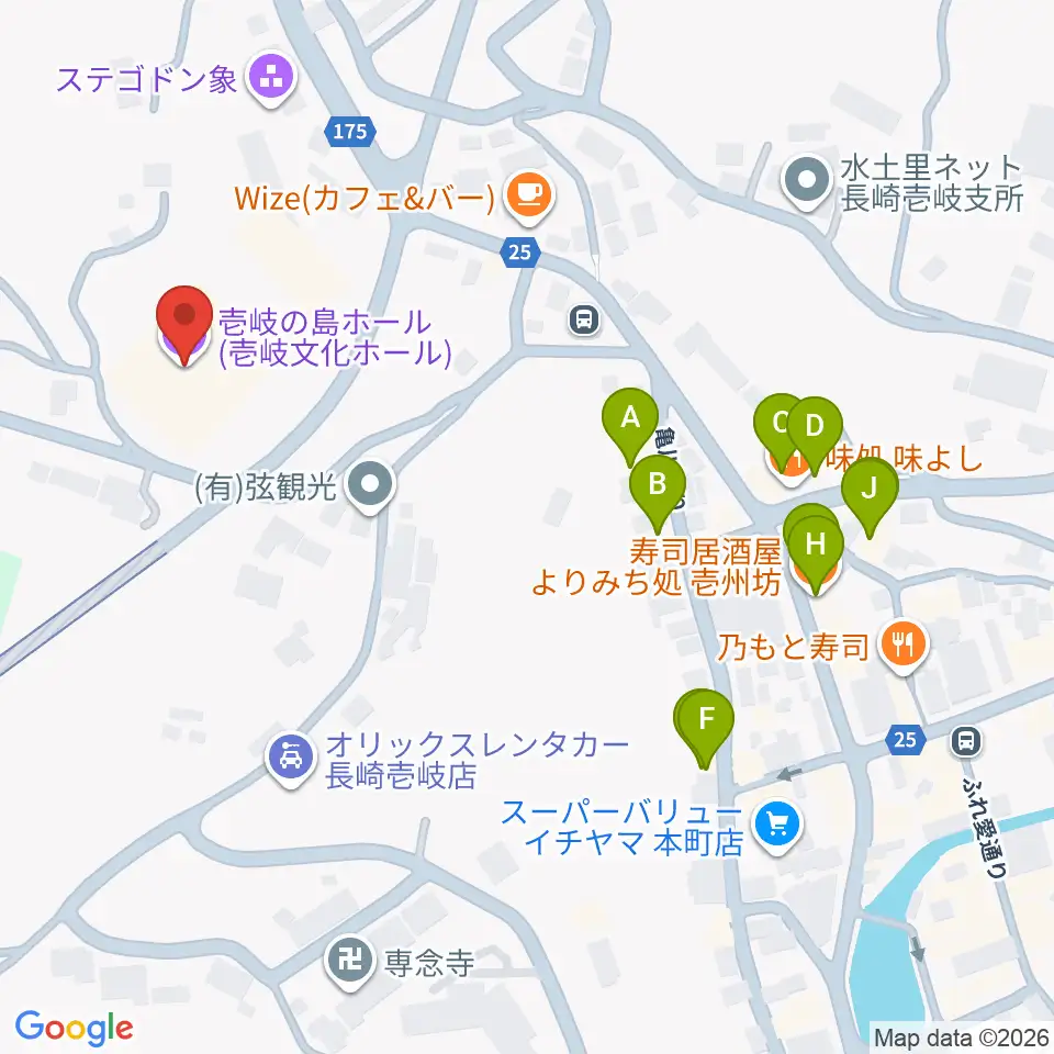 壱岐の島ホール周辺のファミレス・ファーストフード一覧地図
