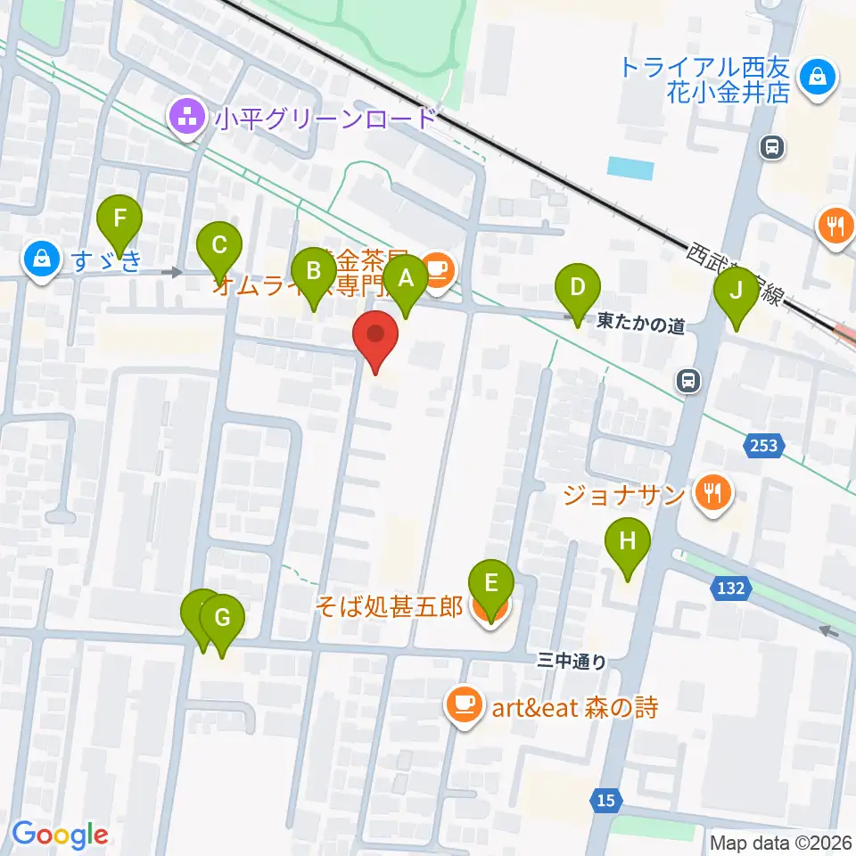 花小金井ライブハウスTSP周辺のファミレス・ファーストフード一覧地図