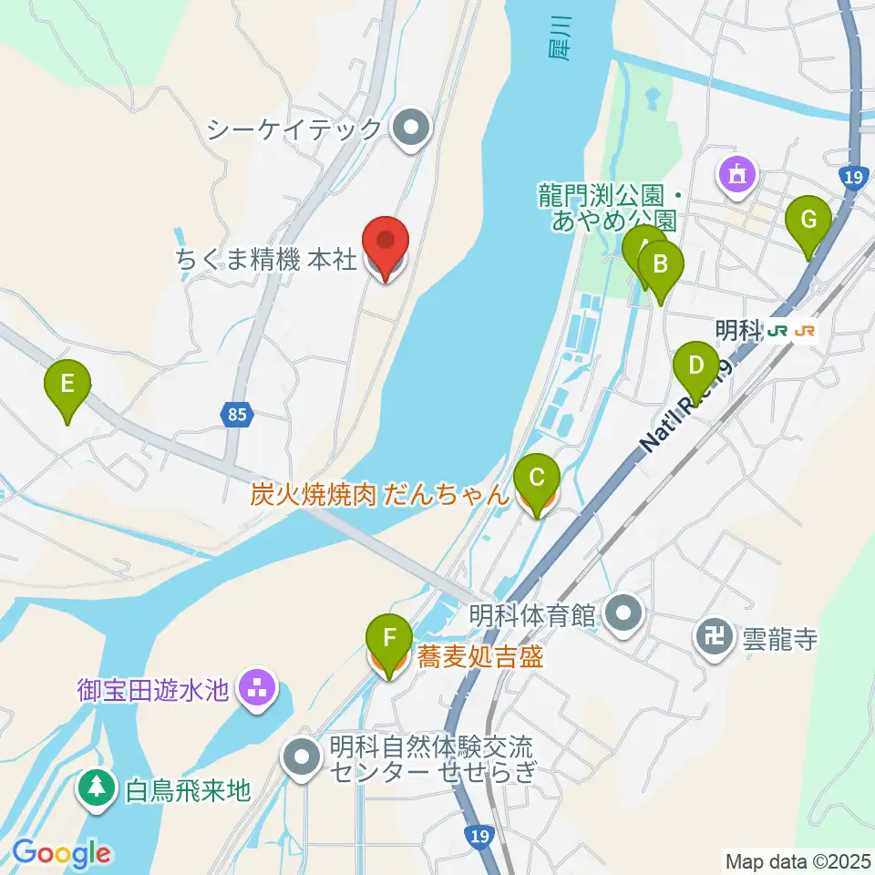 あづみ野エフエム周辺のファミレス・ファーストフード一覧地図